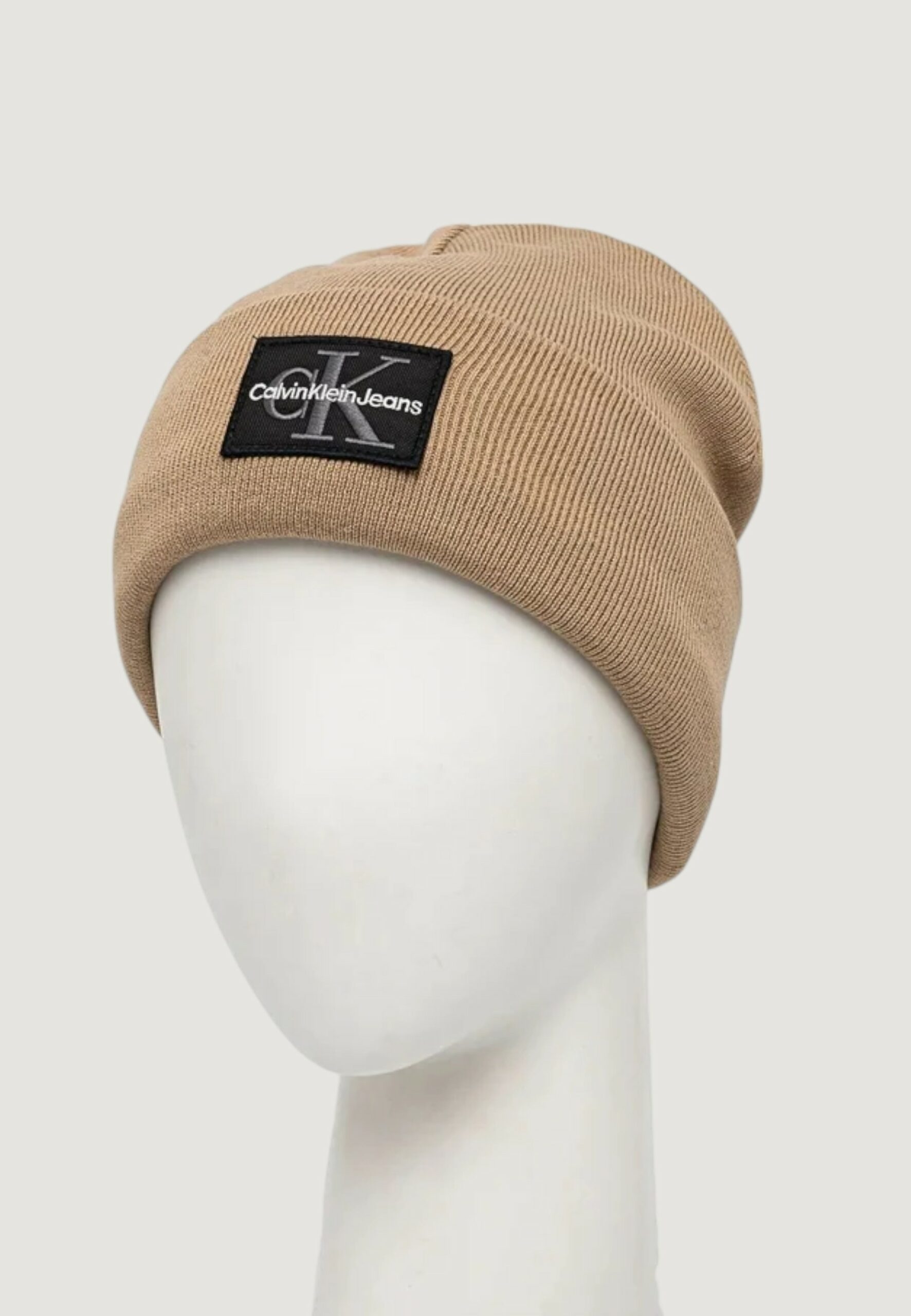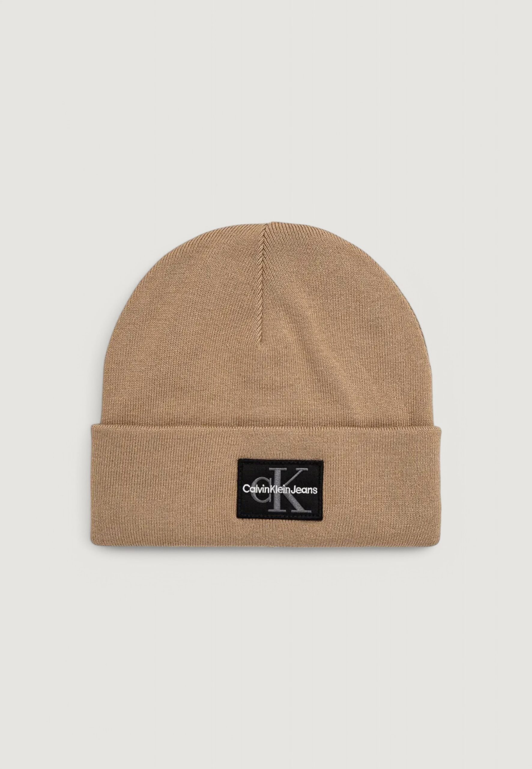 Berretto Calvin Klein Jeans mono logo patch beanie warm Beige