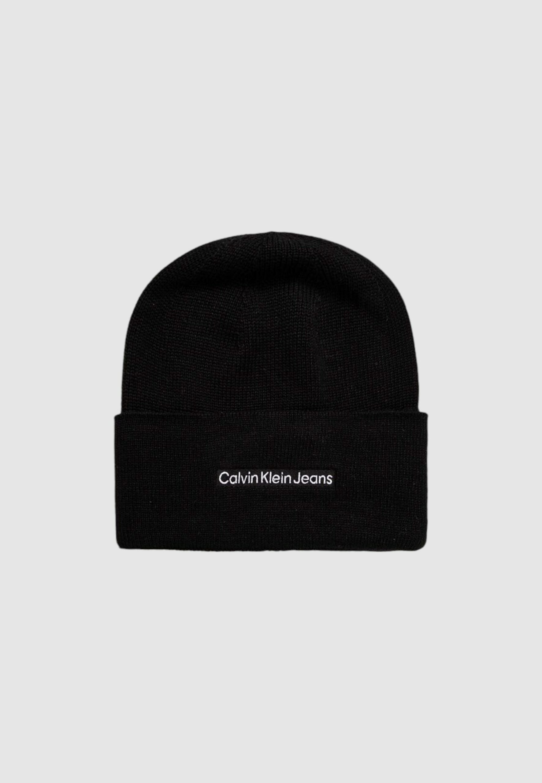 Berretto Calvin Klein Jeans mono logo patch beanie warm Nero