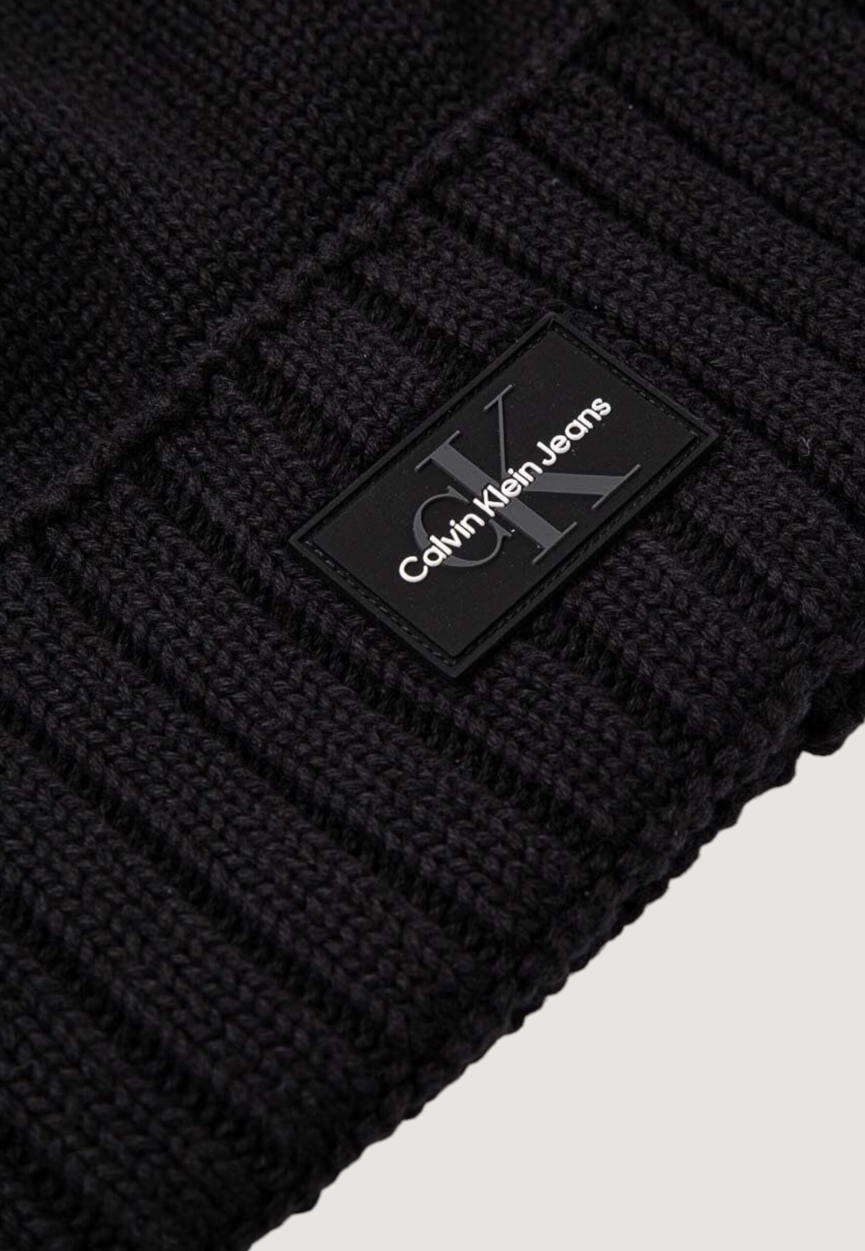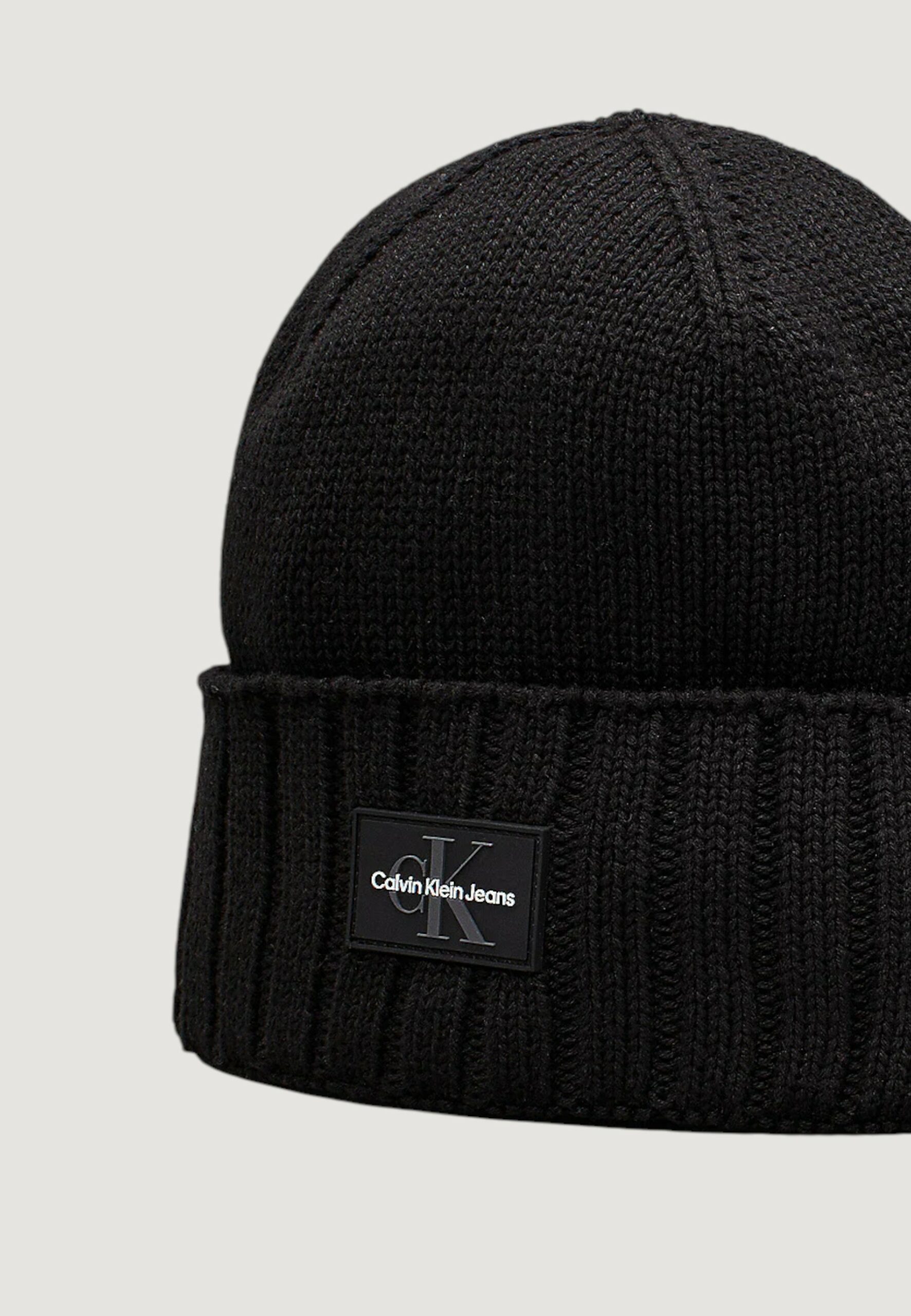Berretto Calvin Klein Jeans mono logo patch beanie warm Nero