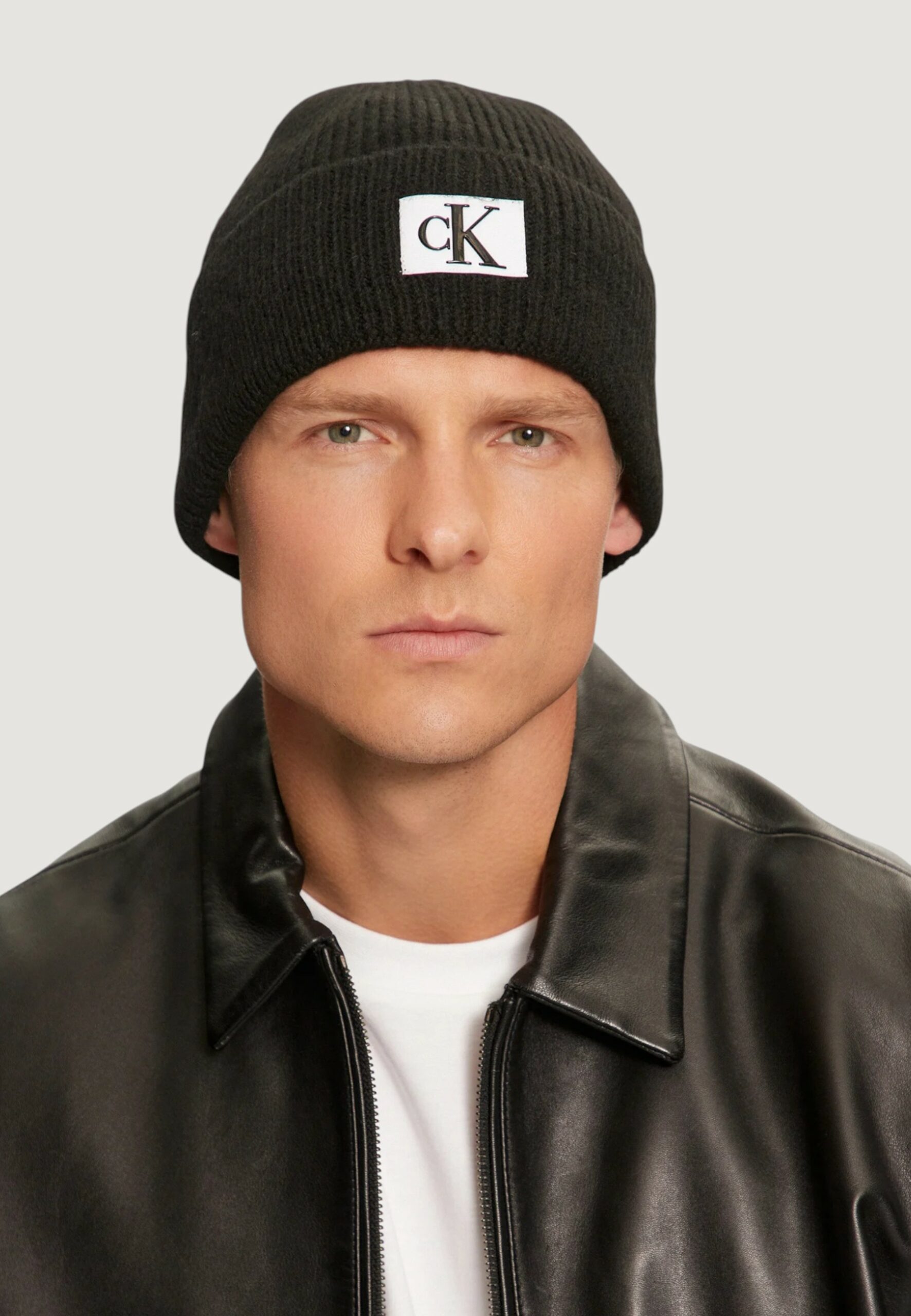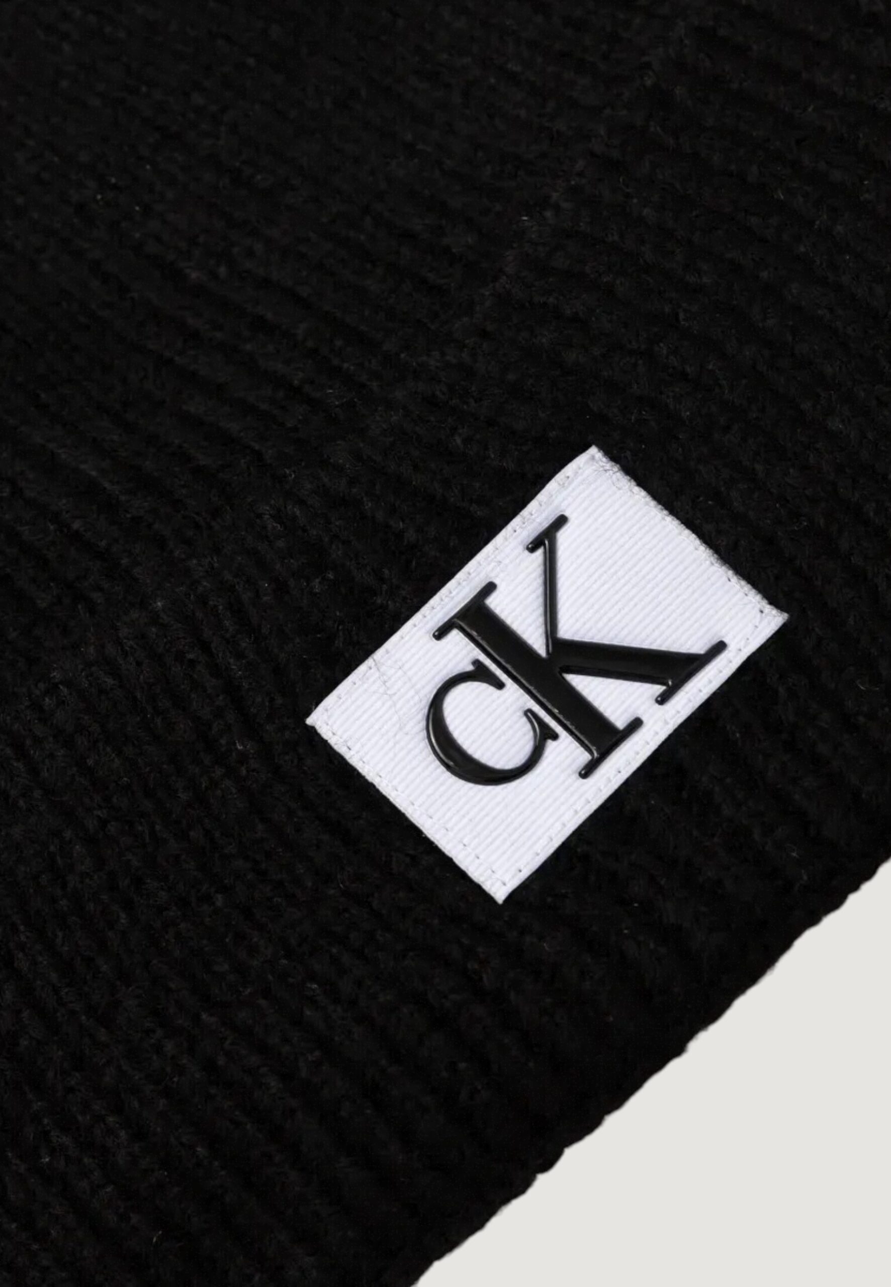 Berretto Calvin Klein Jeans mono logo patch beanie warm Nero