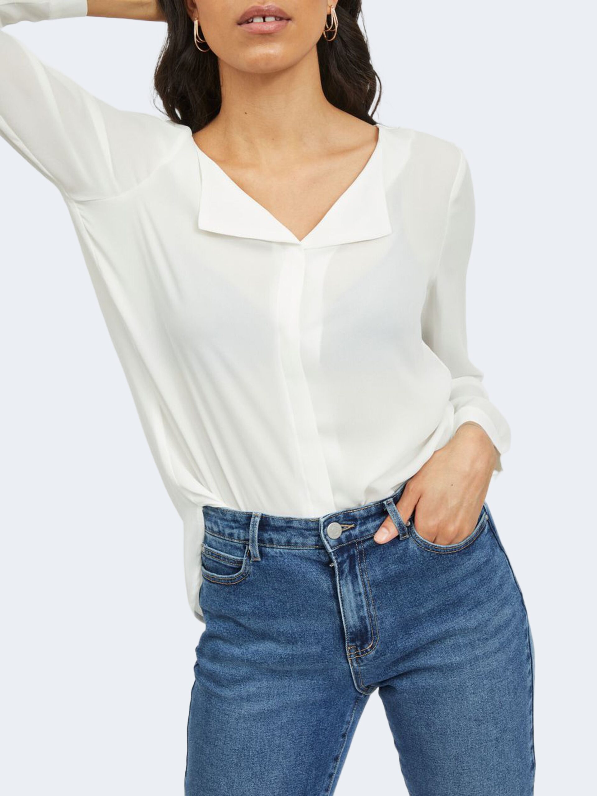 Top Vila Clothes vimulli v-neck l/s top Crema