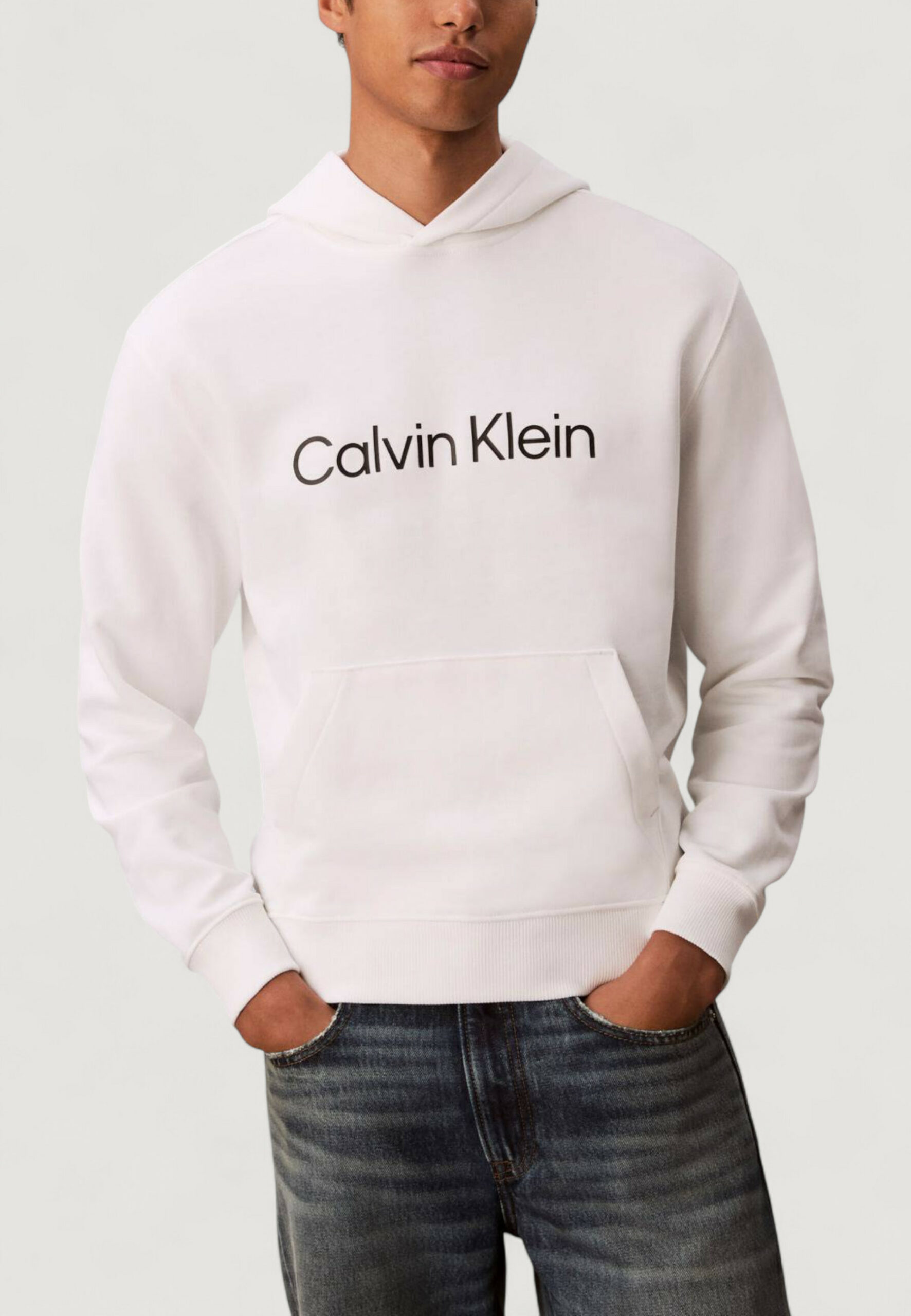Felpa con cappuccio Calvin Klein ls eu standard logo Bianco