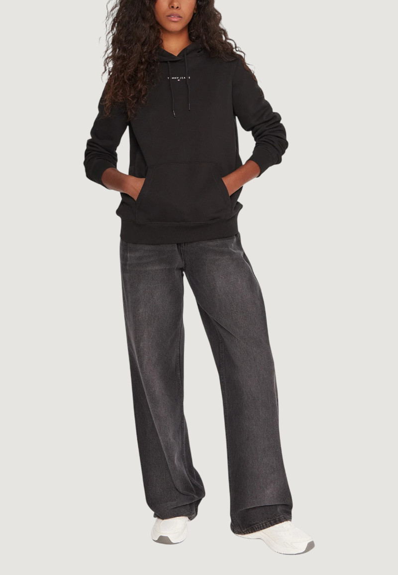Felpa con cappuccio Tommy Hilfiger Jeans tjw reg linear hoodi Nero