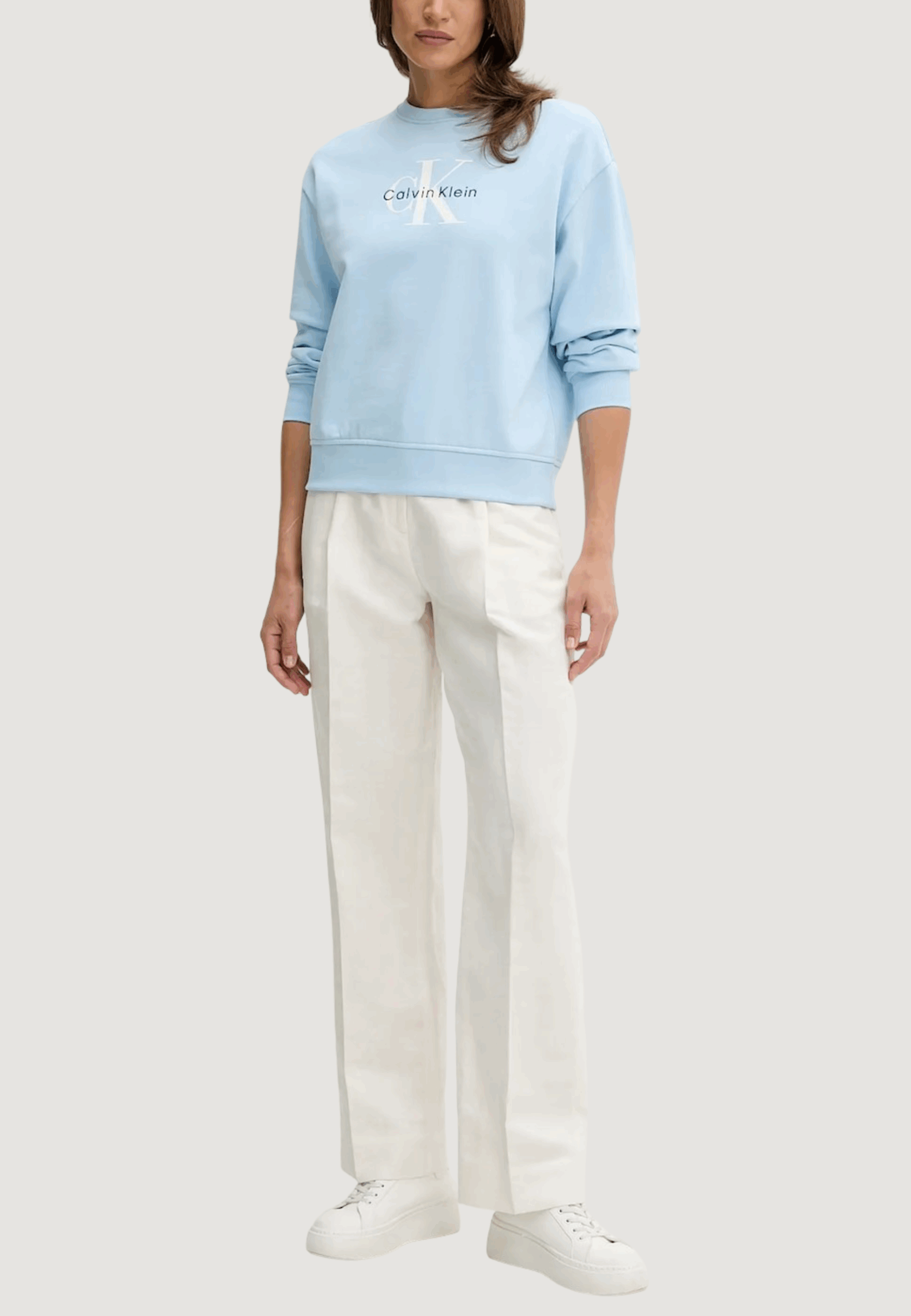 Felpa senza cappuccio Calvin Klein Jeans ls monologo french t Blu Chiaro