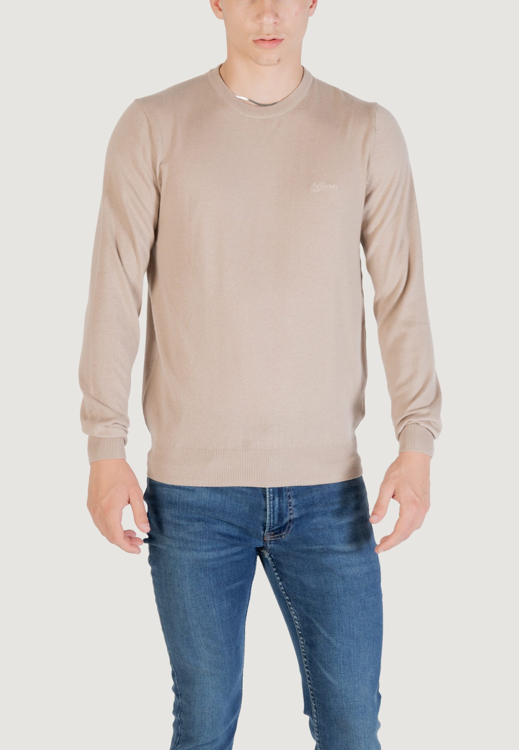 Maglione Guess daniel cn ls basic swtr Beige chiaro