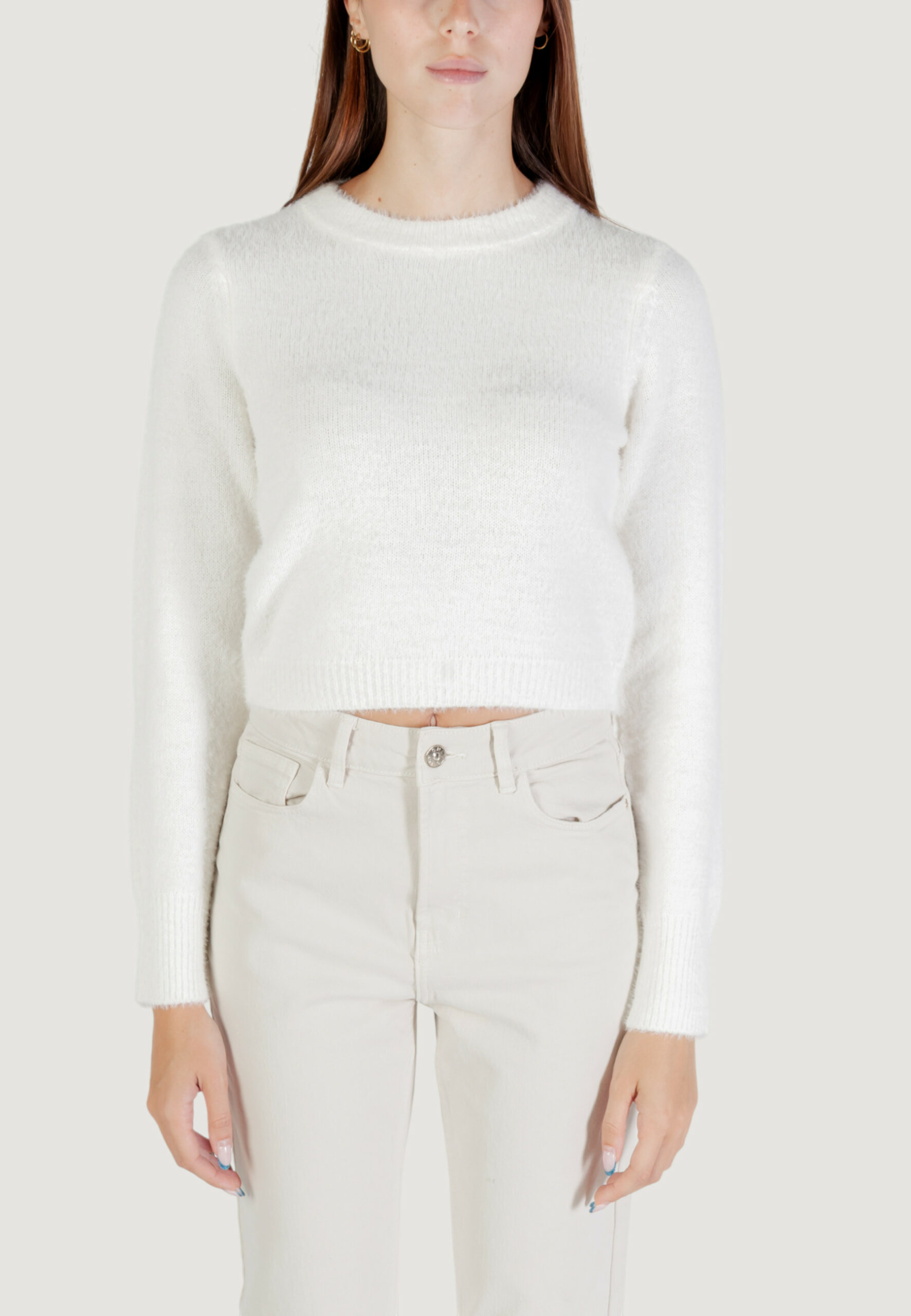 Maglione Only onlpetra ls short o-neck cc knt Bianco