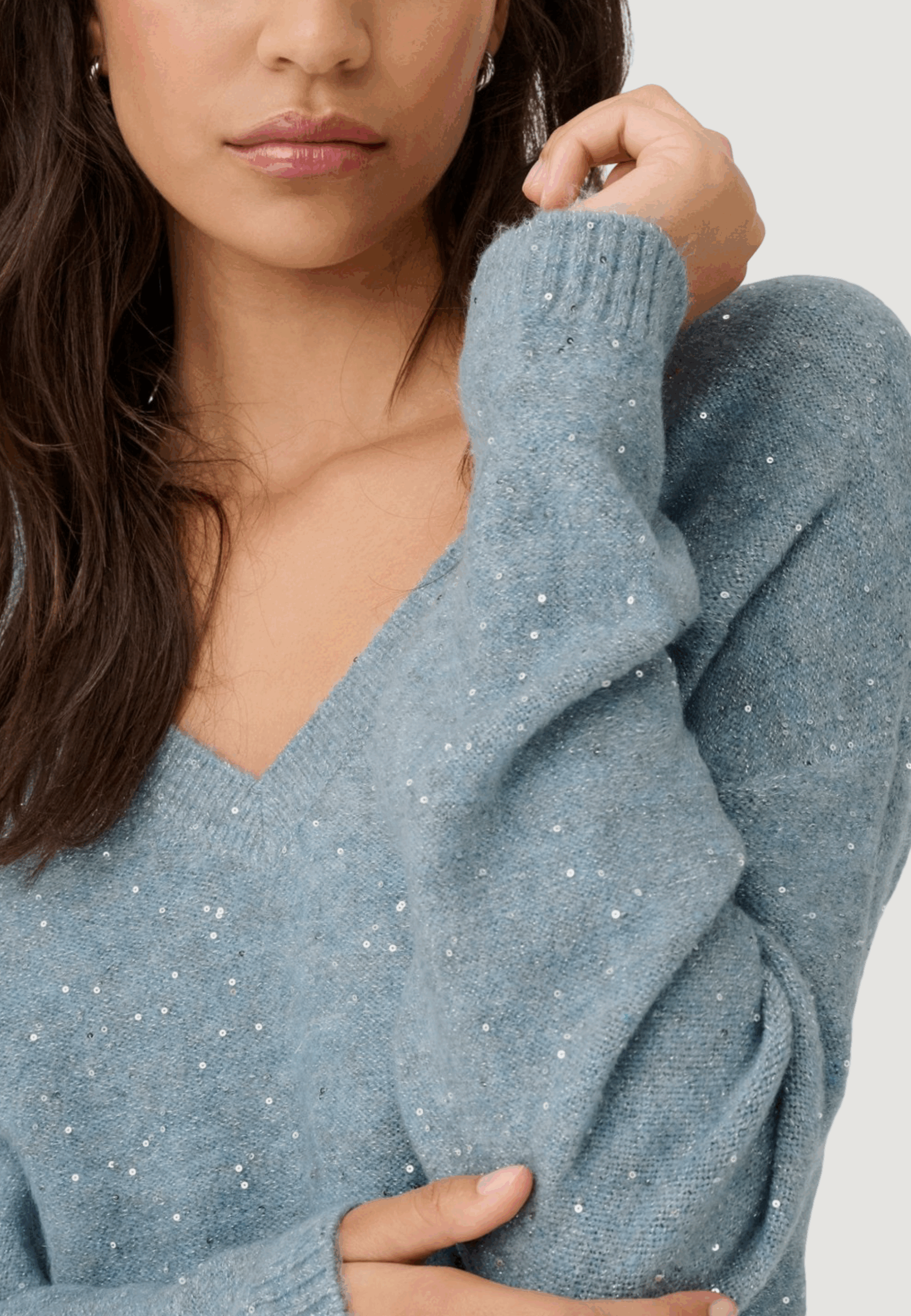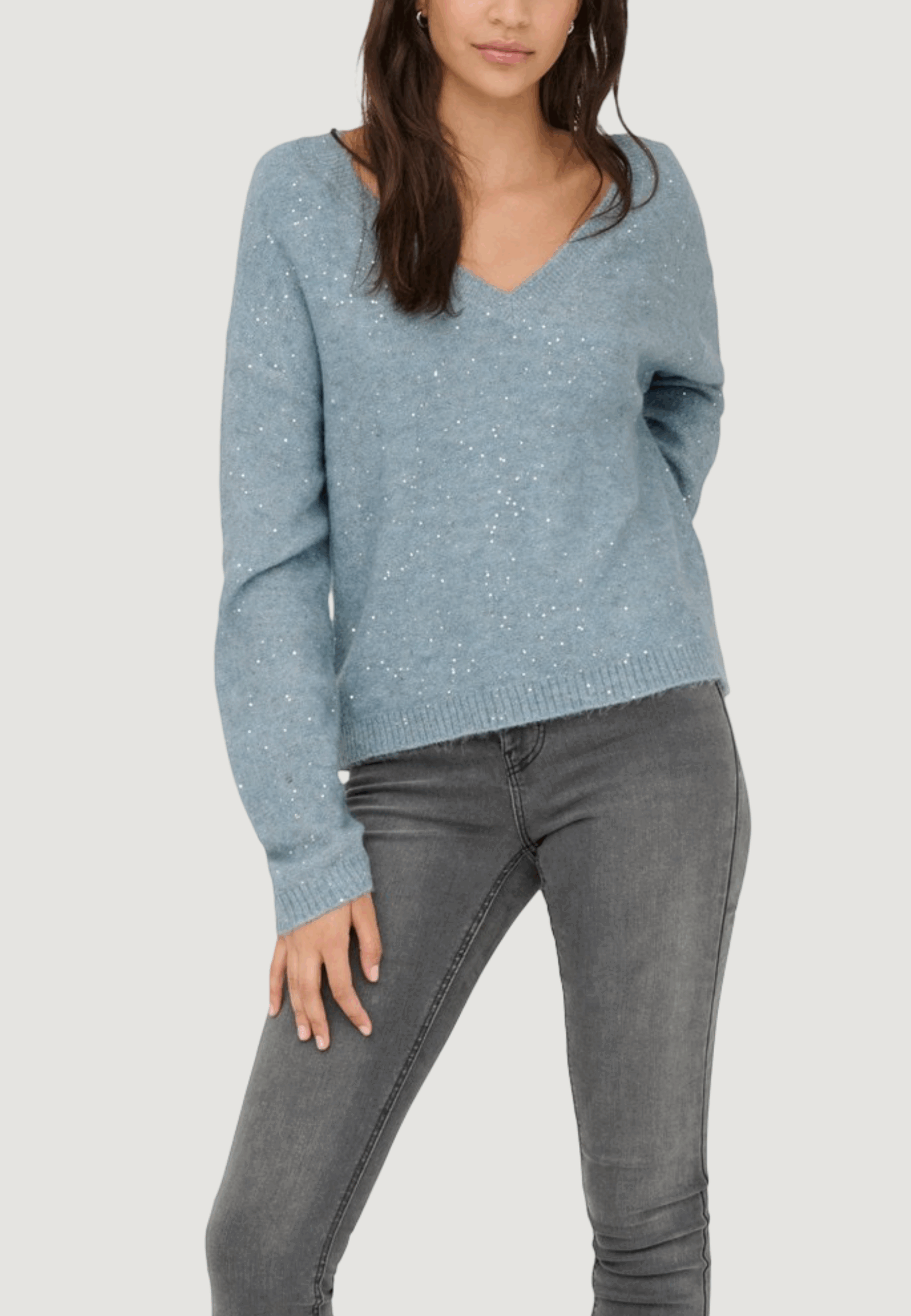 Maglione Only onlarizona ls sequins v-neck pul knt Celeste