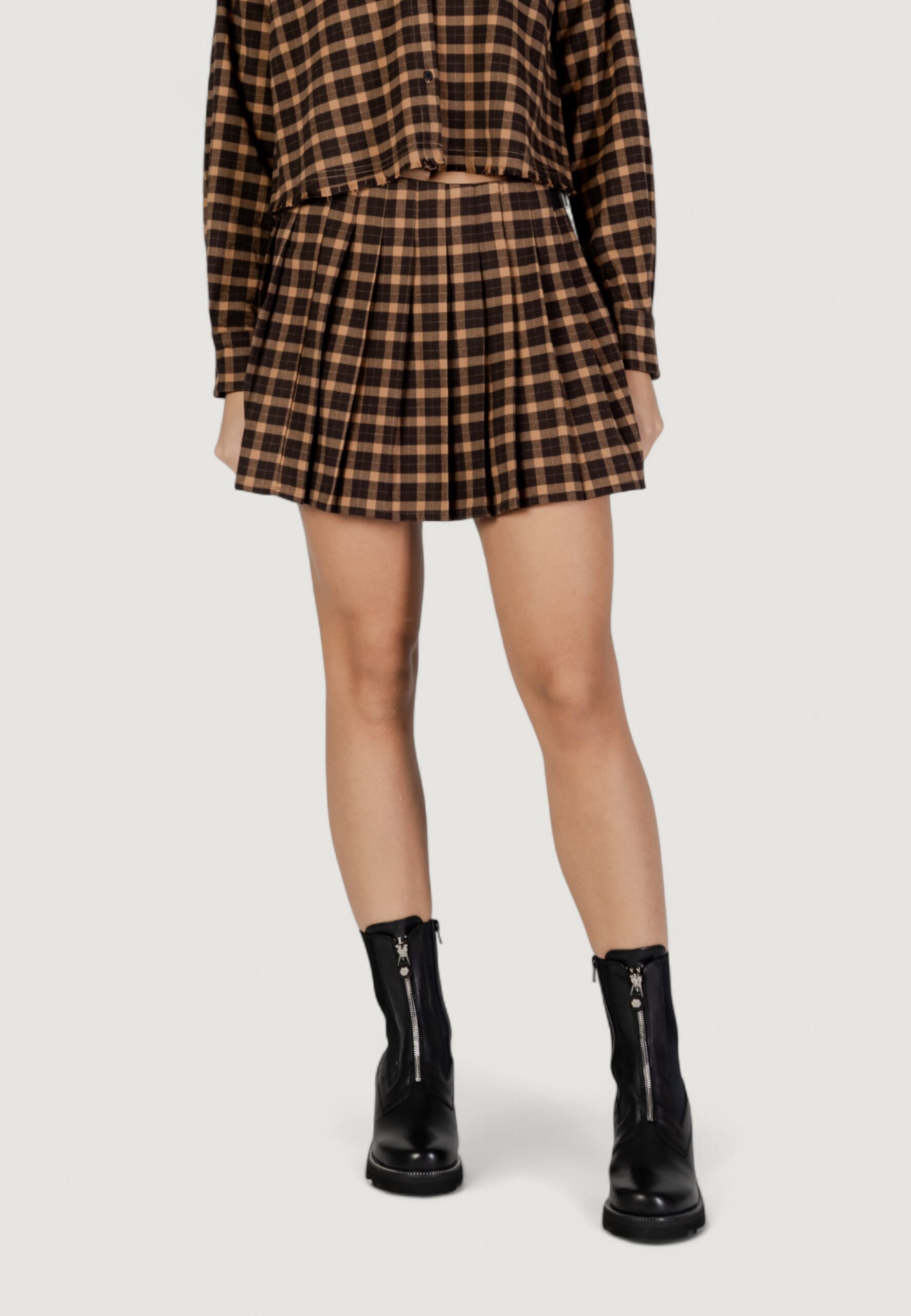 Minigonna Only onlcat life hw plisse check skirt pnt Marrone Scuro