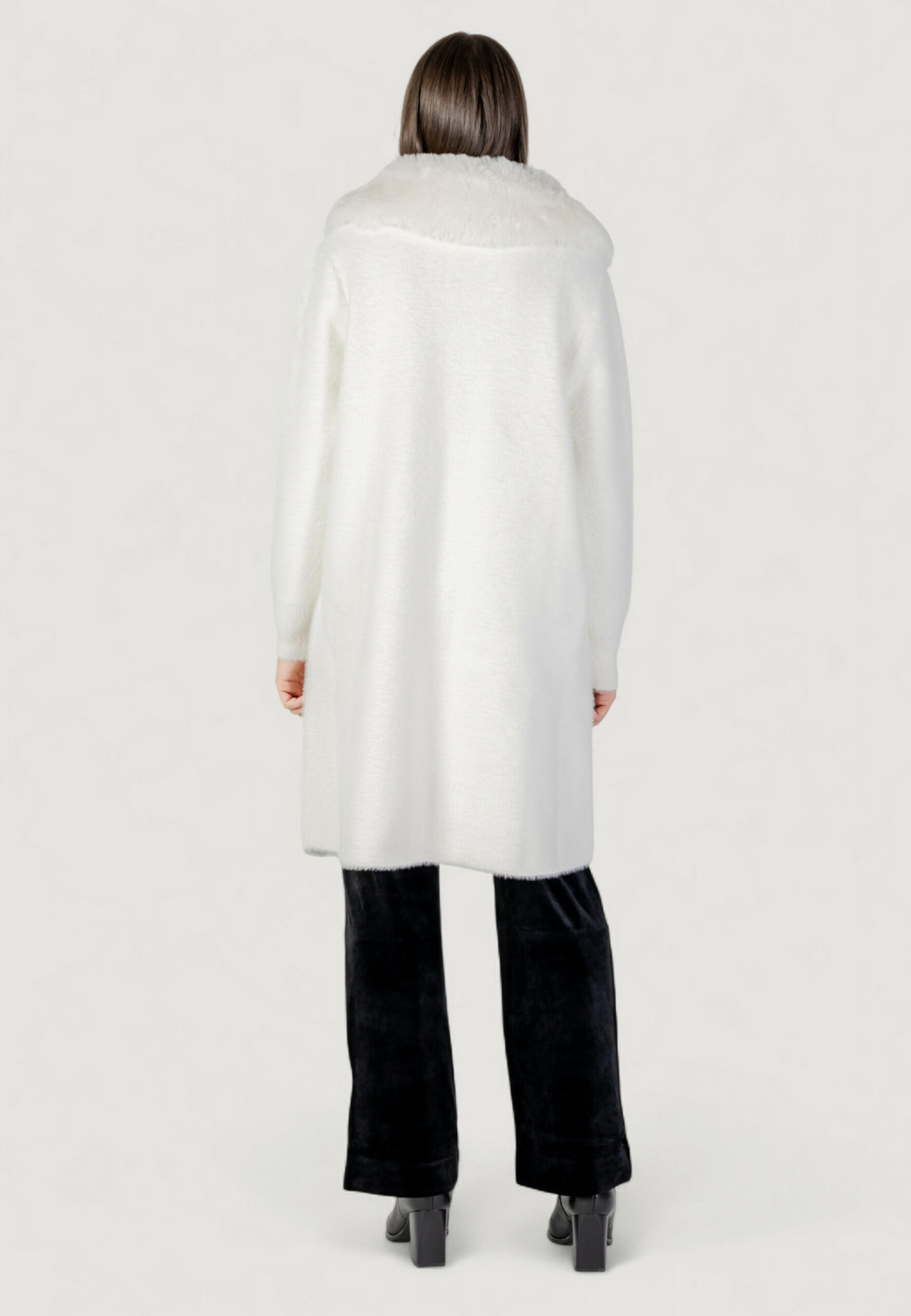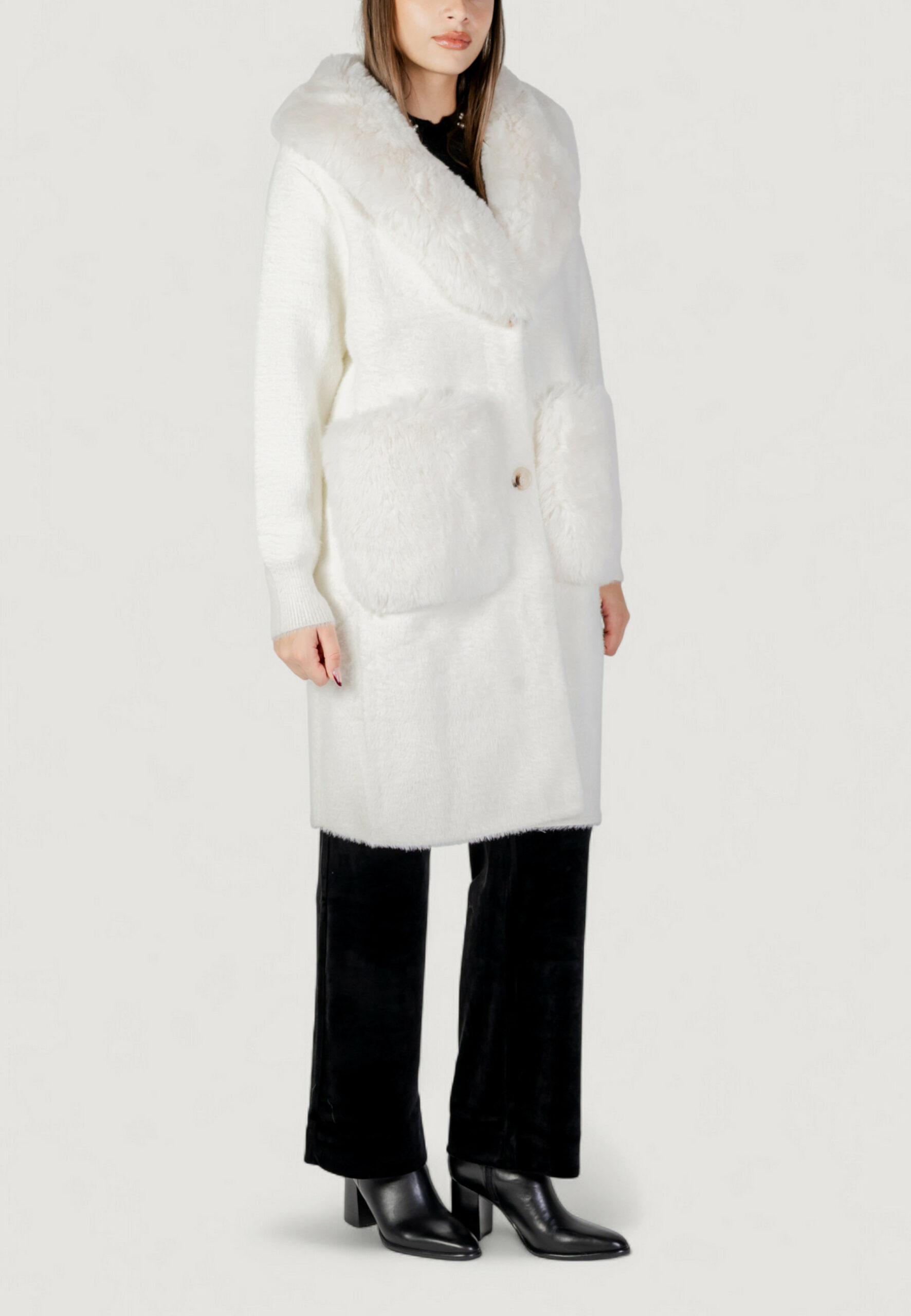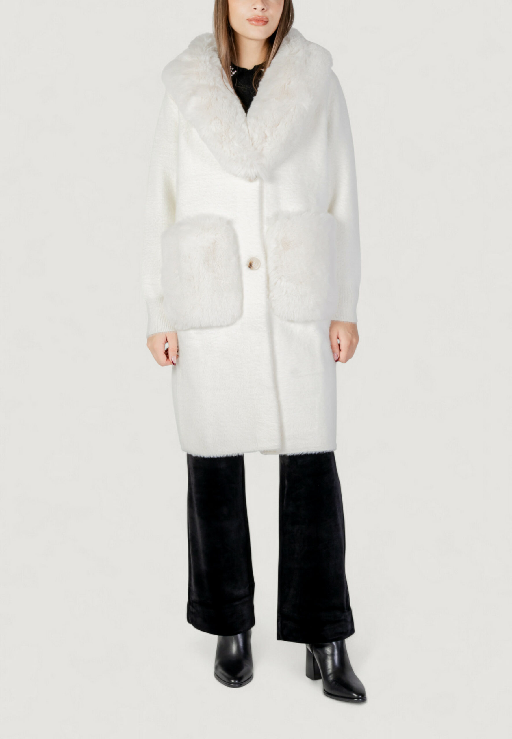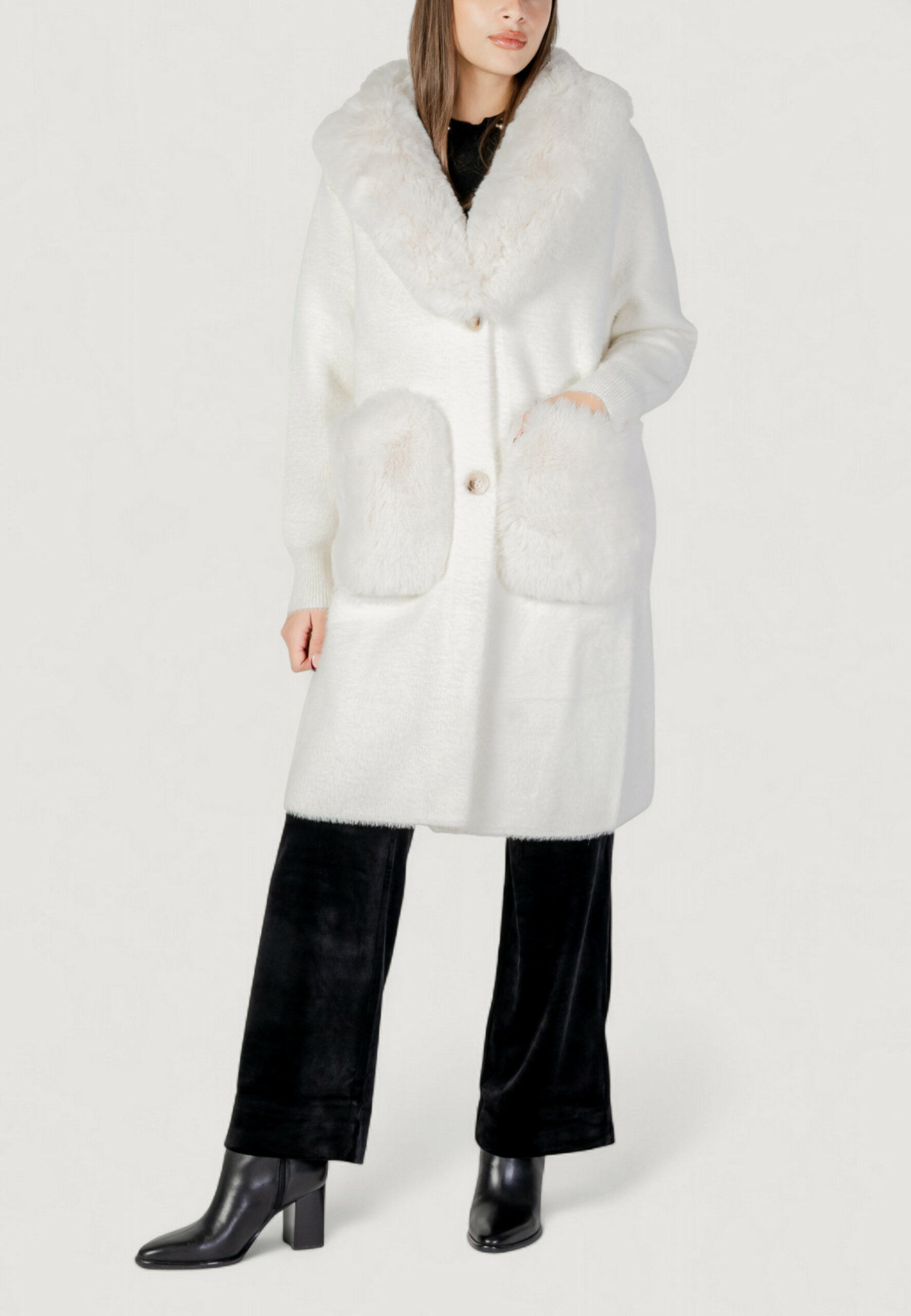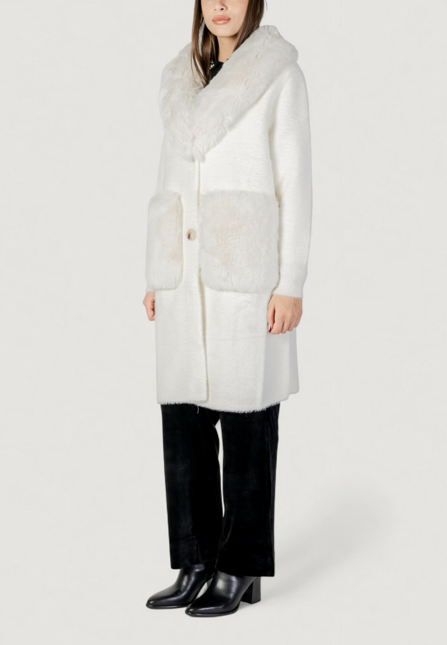 Pelliccia ecologica AYFEE giacca maglieria lunga con tasche Bianco
