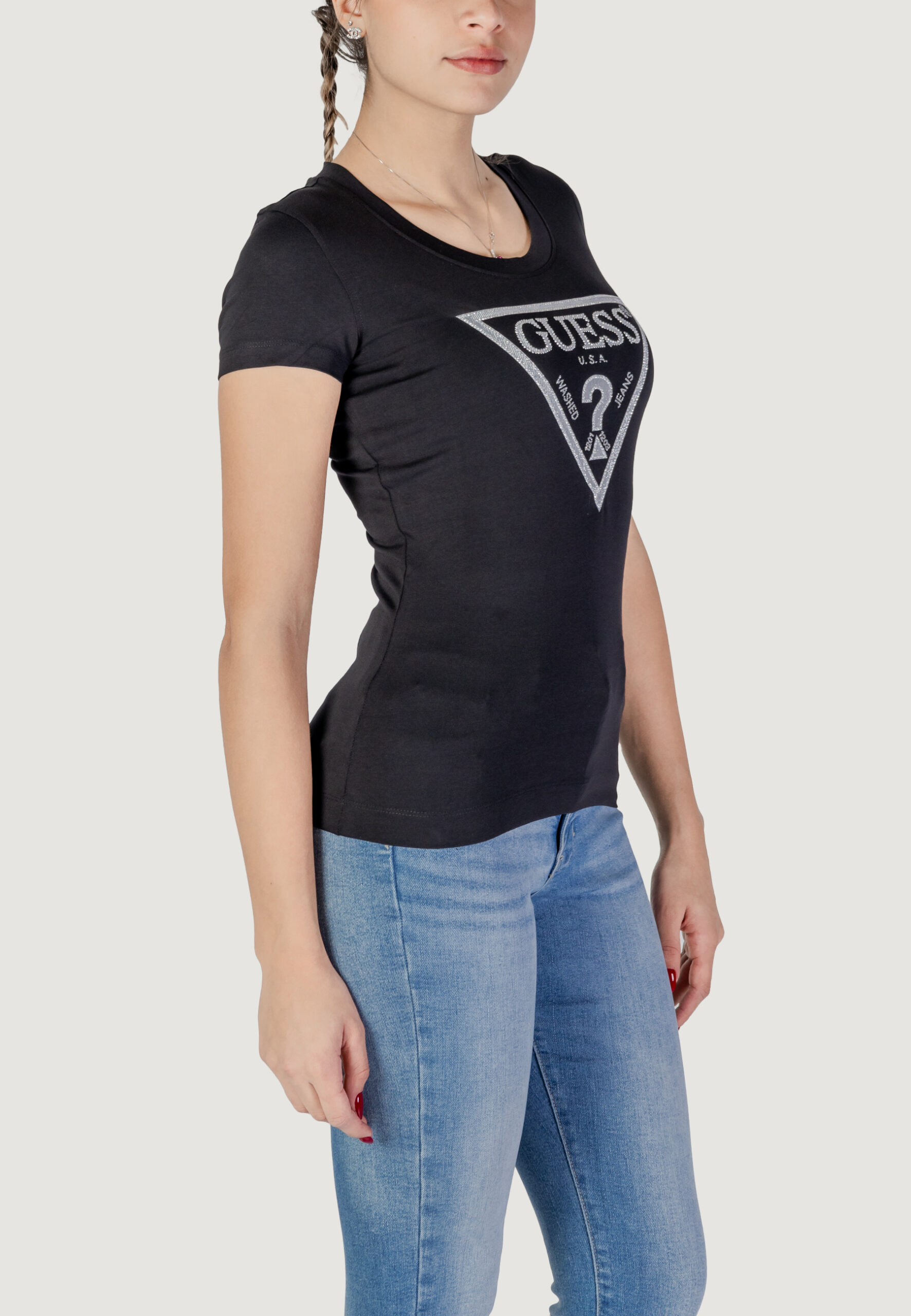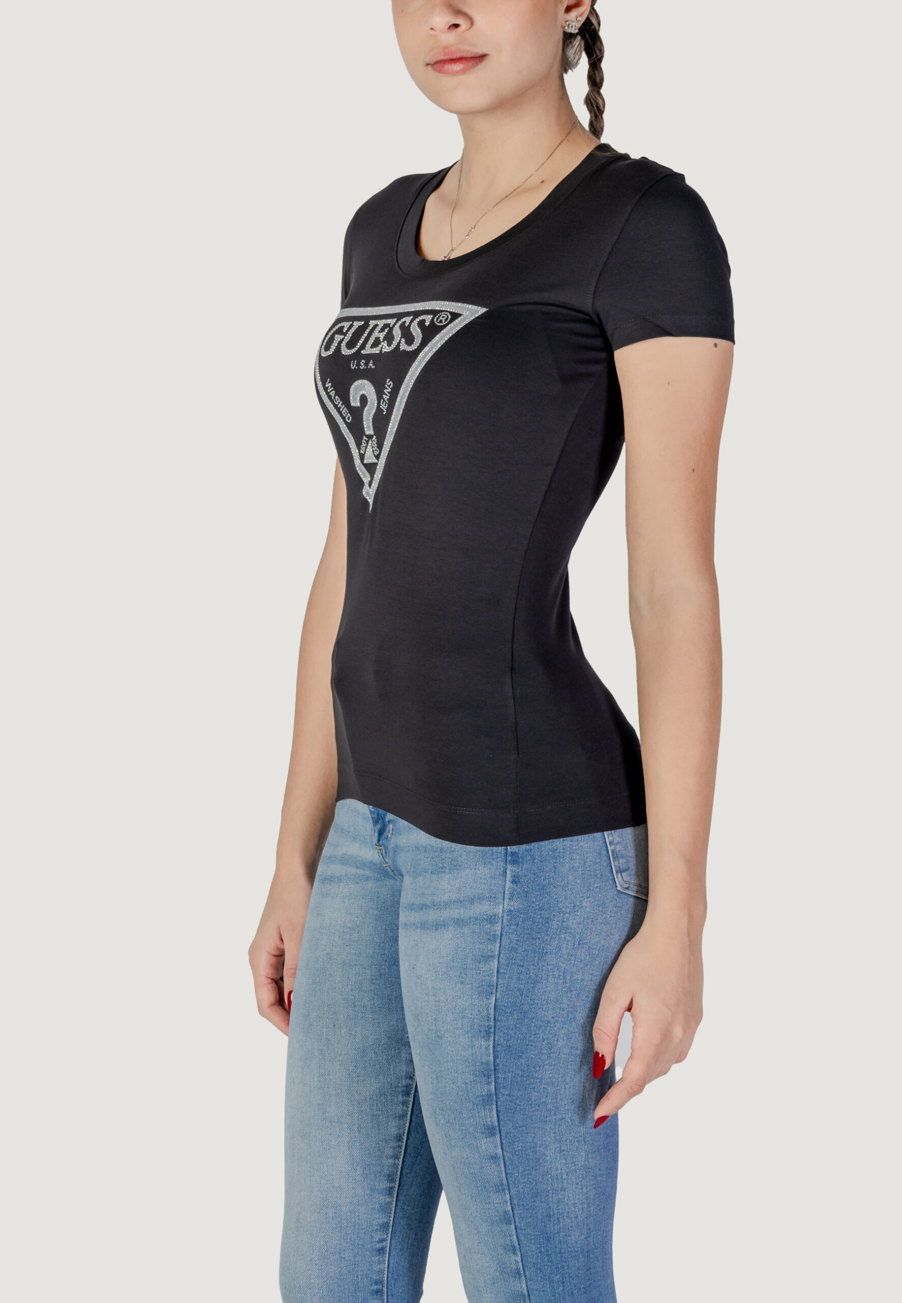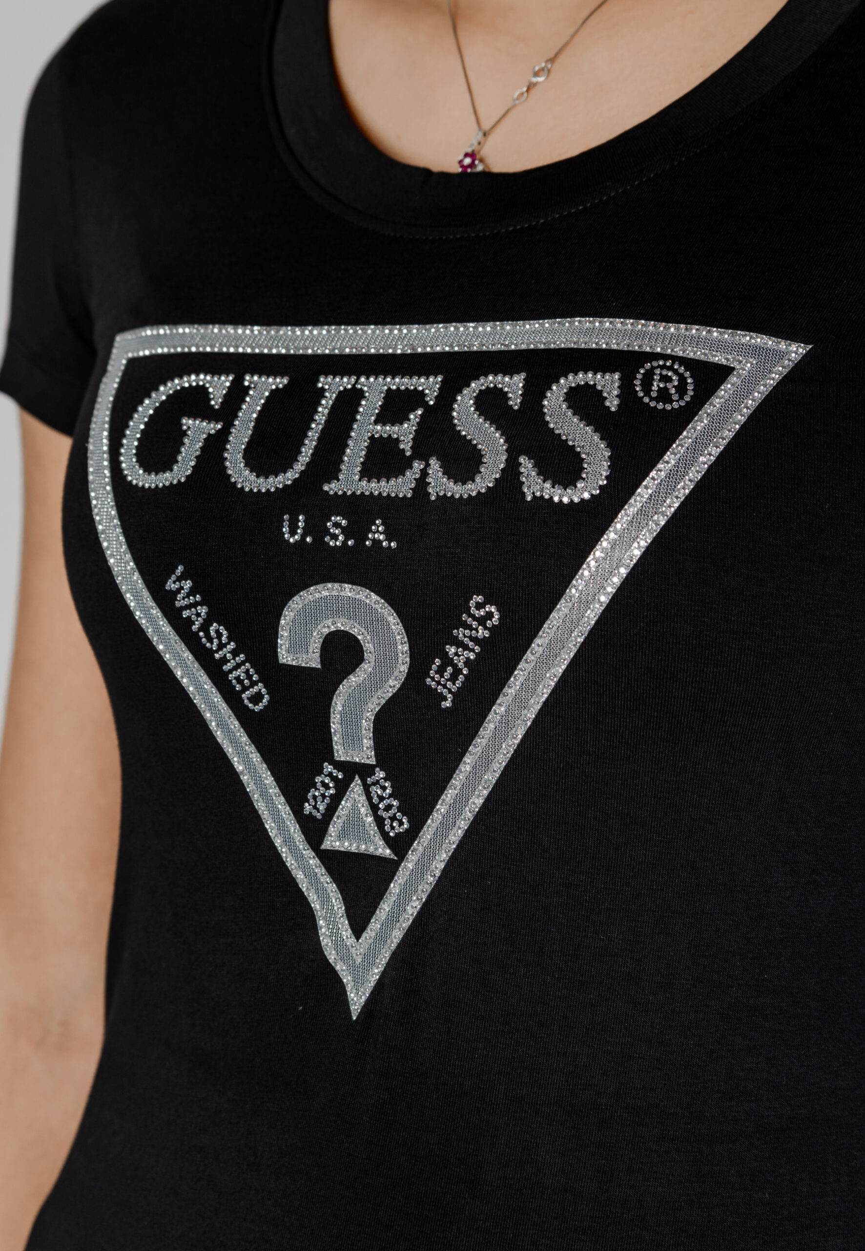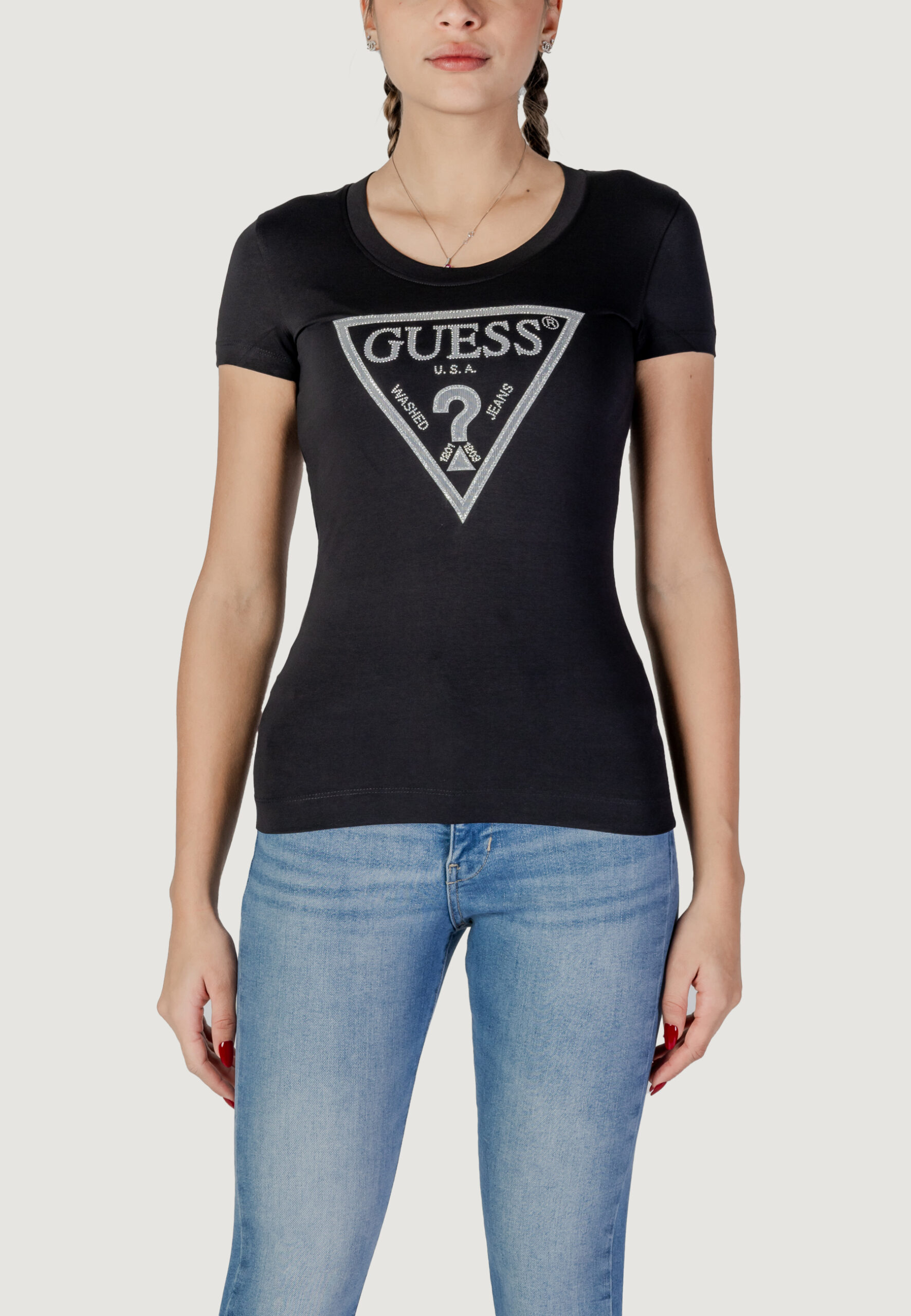 T-shirt Guess ss cn shiny triangle Nero