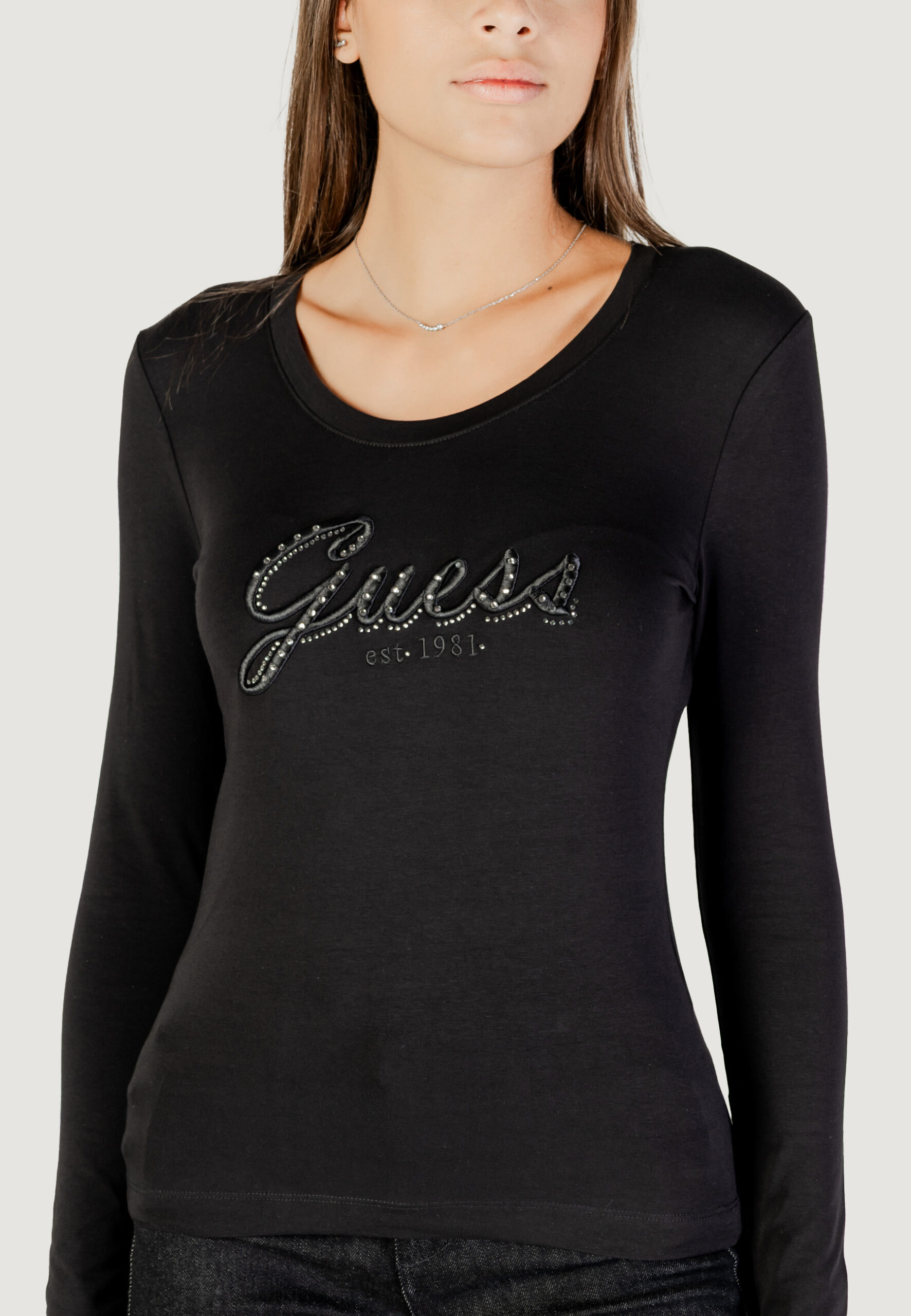 T-shirt manica lunga Guess cn ls embro script logo tee Nero