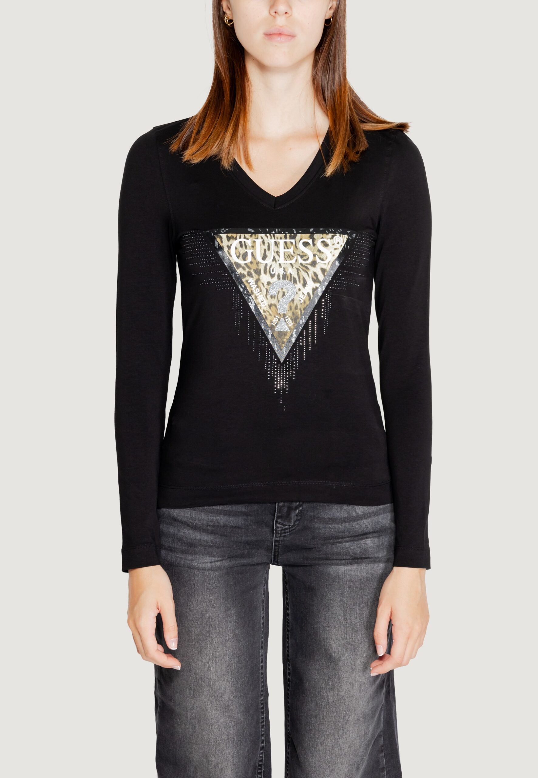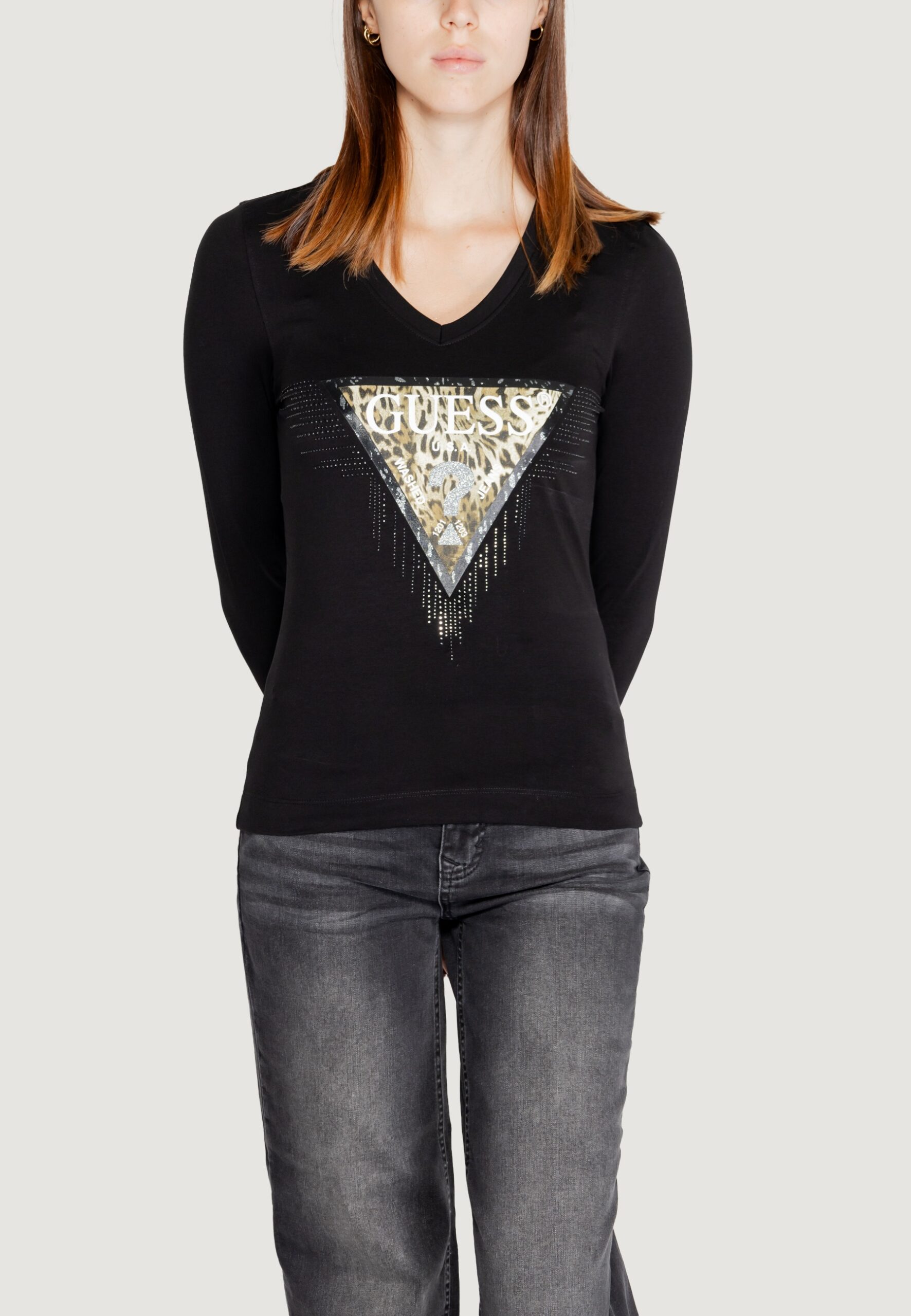 T-shirt manica lunga Guess ls vn triangle tiger tee Nero