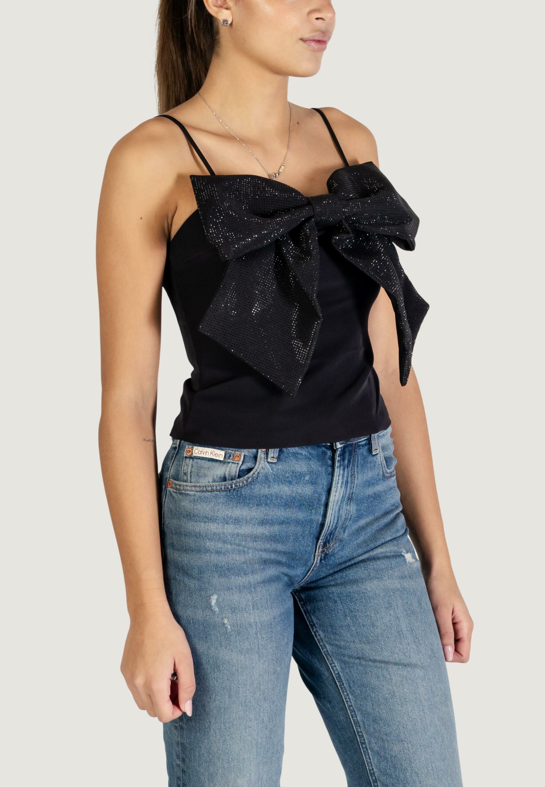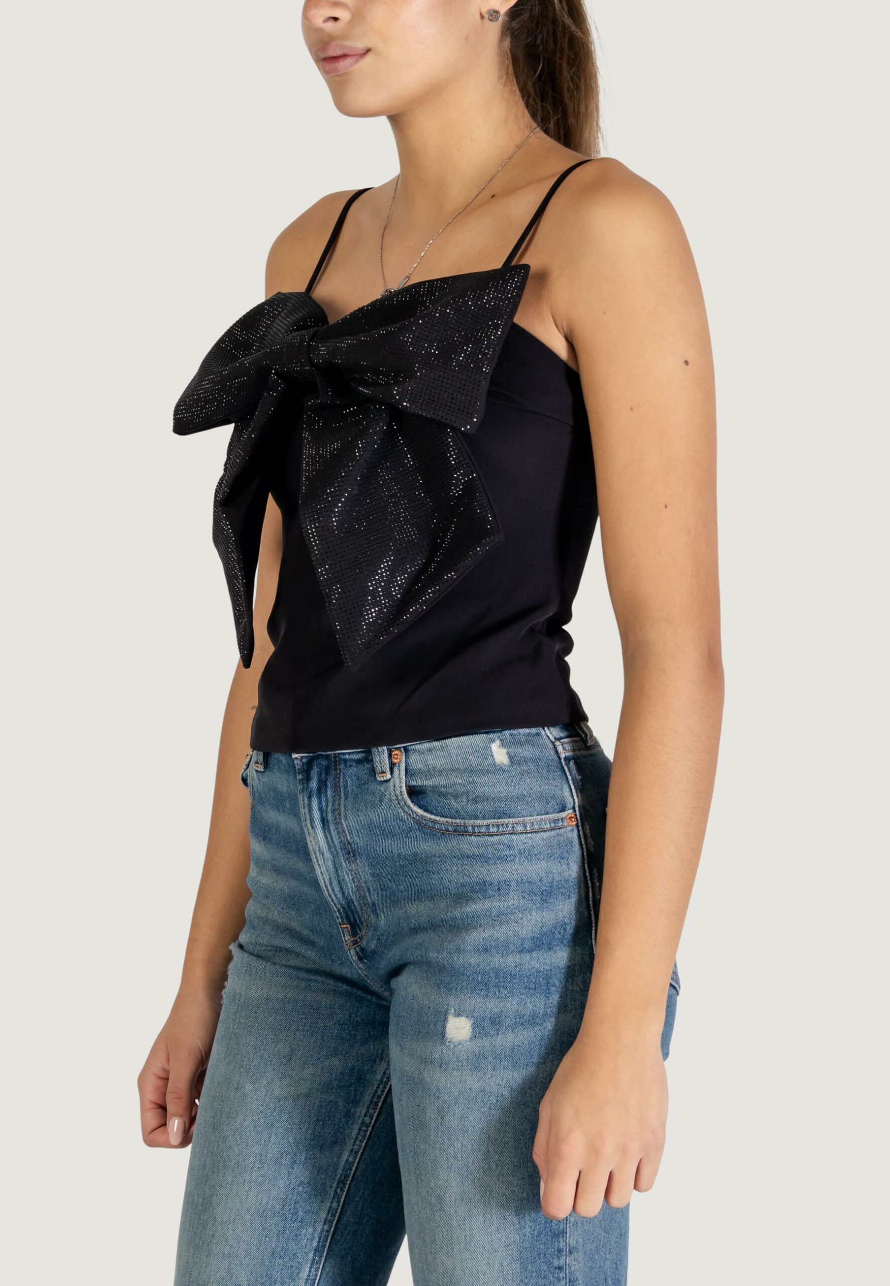 Top Only onlginie rhinestone bow strap top wvn Nero