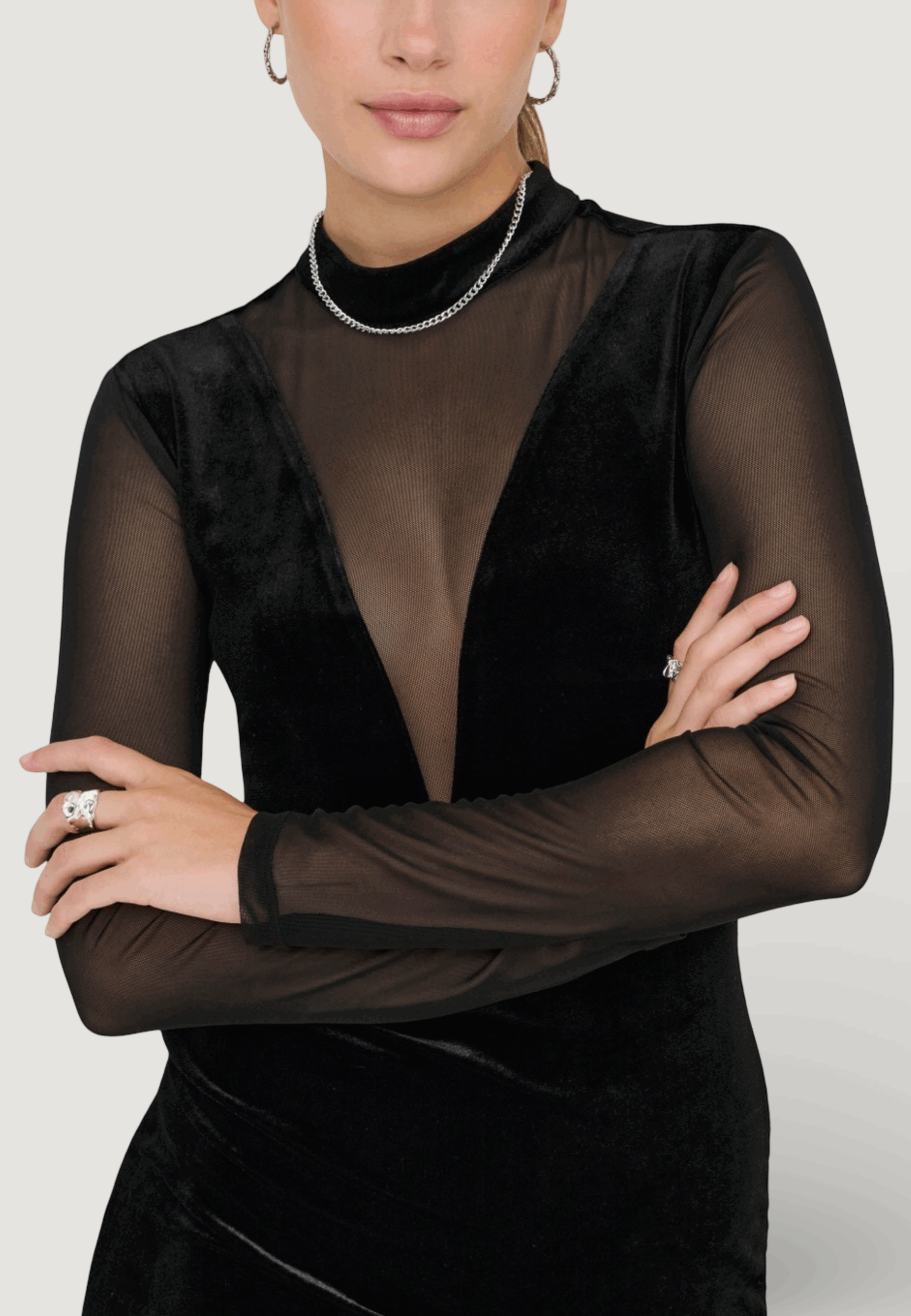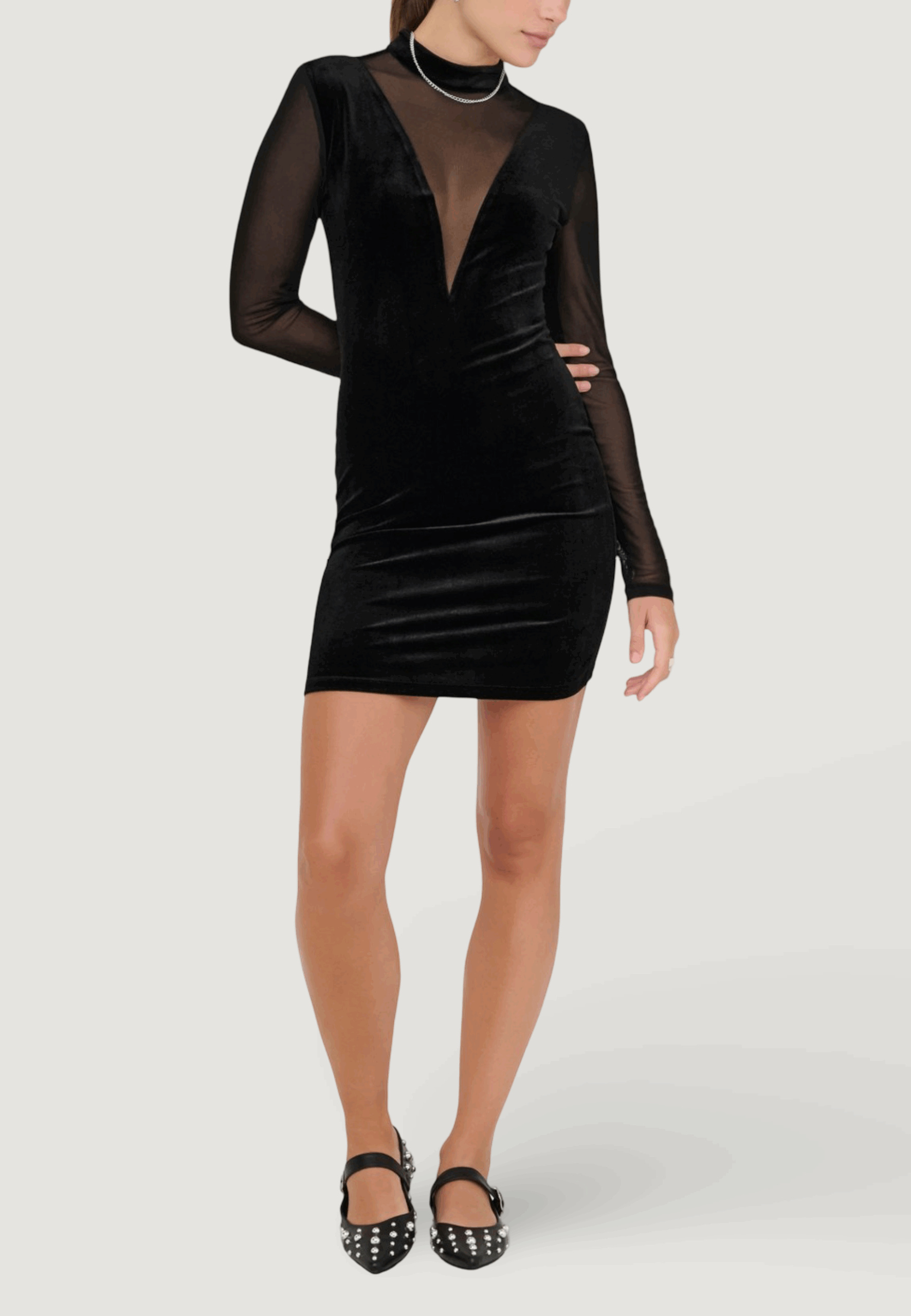 Vestito corto Only onlsmooth l/s mesh mix short dress jrs Nero